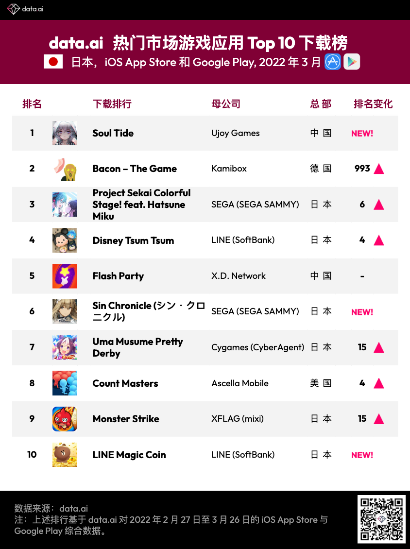 data.ai 3 月日本市场游戏下载与收入榜:团队战斗游戏成热门