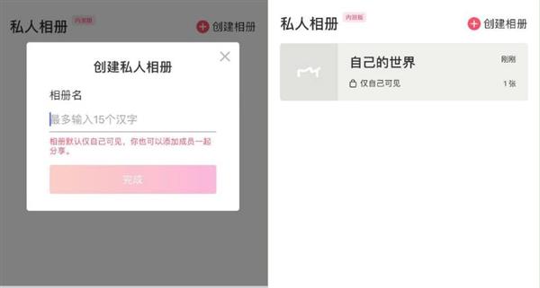 内容安全。据悉,该功用现在仍在内测阶段,每个用户最多可具有20个相册,每个相册可一起同享30个成员相册可随时闭幕成员。
