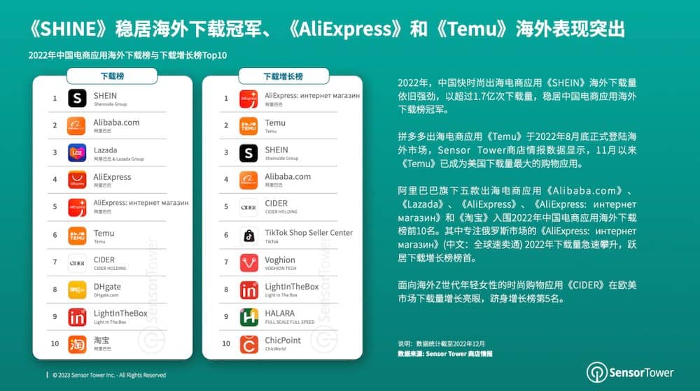 《SHEIN》稳居出海电商下载冠军、《Temu》成电商出海赛道黑马