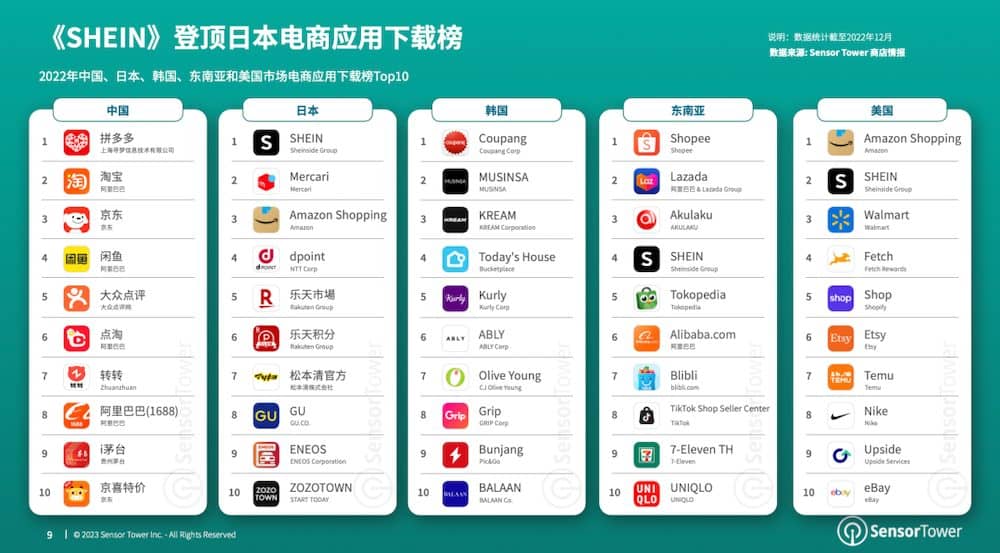来自我国的快时髦出海电商《SHEIN》成为2022年日本商场下载量最大的电商使用,与此同时《SHEIN》在美国、东南亚和拉丁美洲等多个海外商场体现杰出。