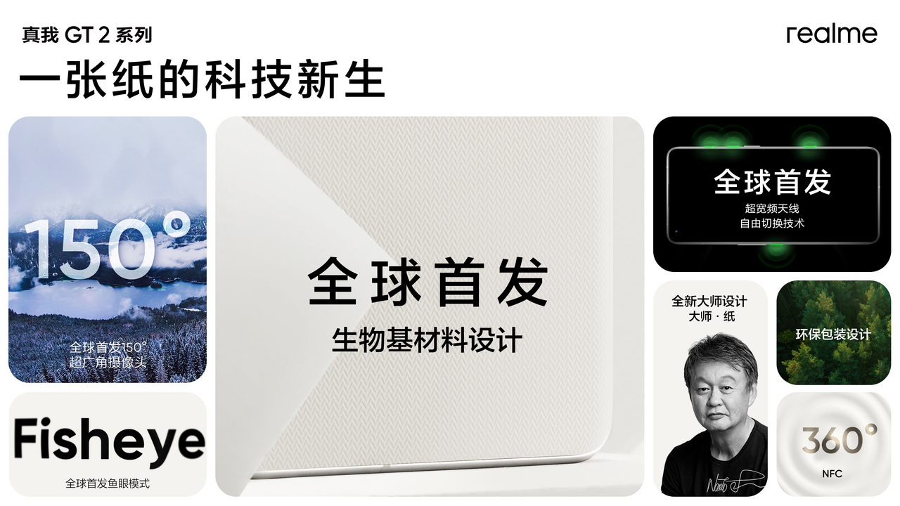 清华大学环境学院李金惠教授表明:“完成手机职业的‘碳中和’,关于双碳方针的完成有着活跃深远的影响。选用新式环保资料,是完成手机职业碳中和的重要行动。realme在其高端手机产品中,进行了斗胆的立异规划,首先使用了生物基资料。不仅为产品带来了共同的视觉、触觉体会,一起是环保资料在智能手机以及消费电子产品范畴使用的一次重要探究。”在特别活动上,realme宣告将再次与工业规划大师深泽直人联手,打造真我GT2系列的全新大师规划,并曝光首款配色命名:大师·纸。